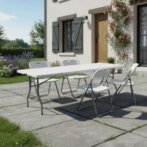 Mesa Plegable Tipo Valija 180 Cm Blanca Color Blanco