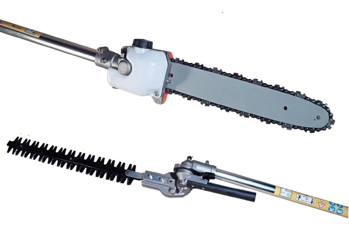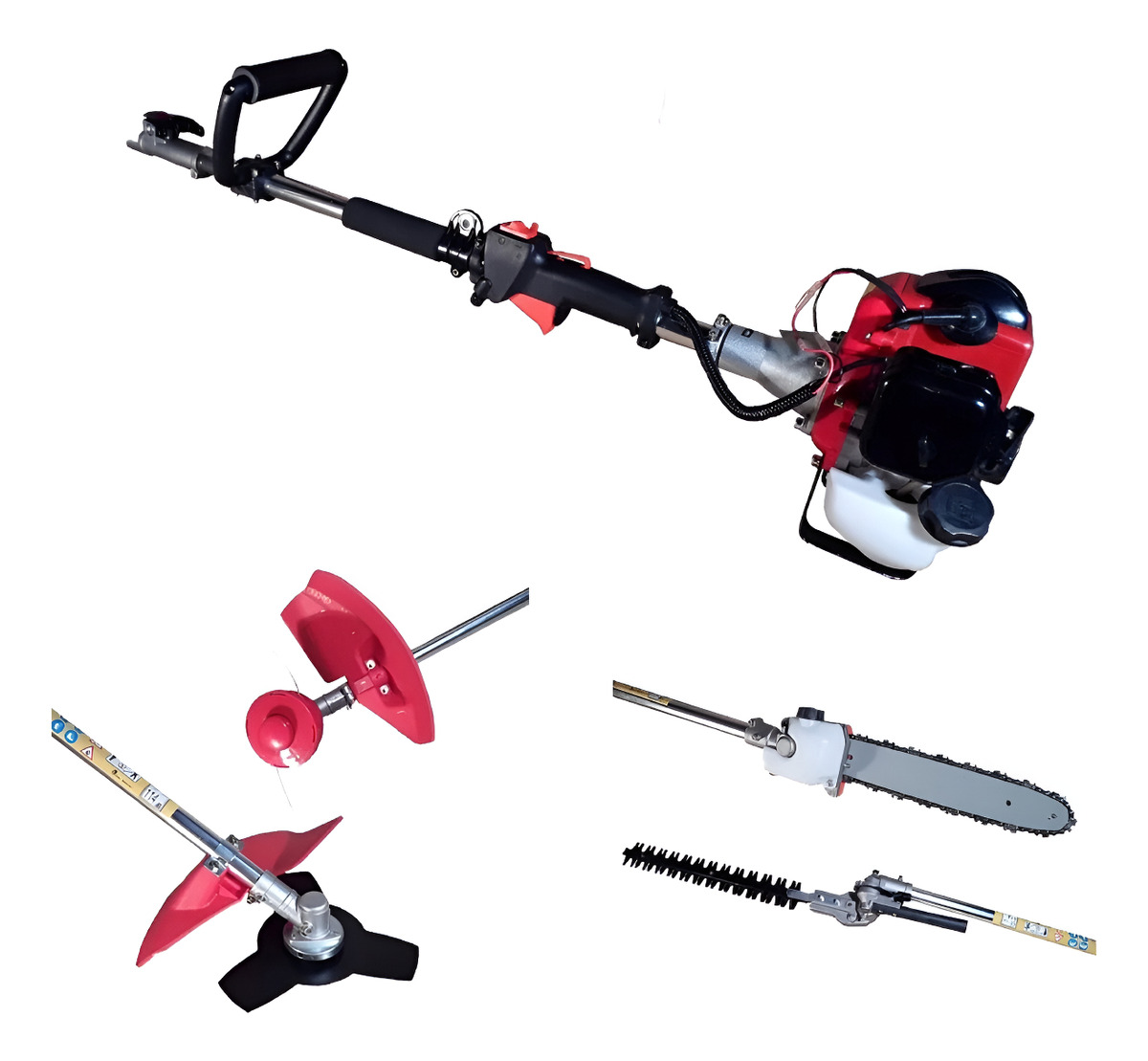 Este equipo cuenta con 4 funciones principales: Desmalezadora, Bordeadora, Motosierra y Cortacerco.