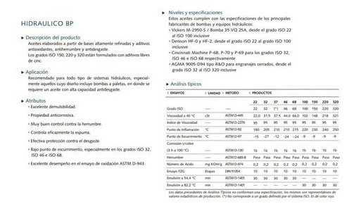 •Bajo punto de escurrimiento, especialmente en los grados ISO 32, ISO 46 e ISO 68.
