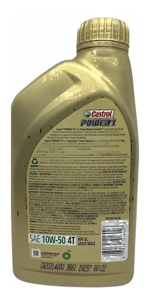 Castrol POWER1 4T con tecnología Power Release ha sido formulado para motociclistas que disfrutan la emoción en la conducción. Castrol POWER 1 es un aceite sintético, de calidad Premium, formulado para motocicletas de 4 tiempos. Ha sido probado y comprobado para brindar una aceleración superior al giro del acelerador dado que fluye con rapidez y minimiza la fricción en el motor.