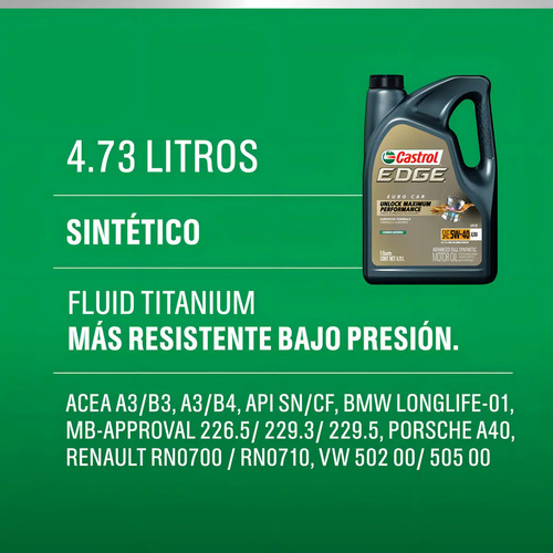 Aceite Para Motor Castrol Sintético 5w-40 Para Auto/camioneta De 1 Unidad X 4.73l