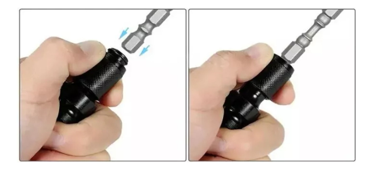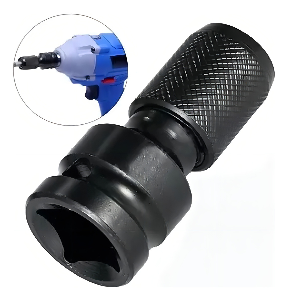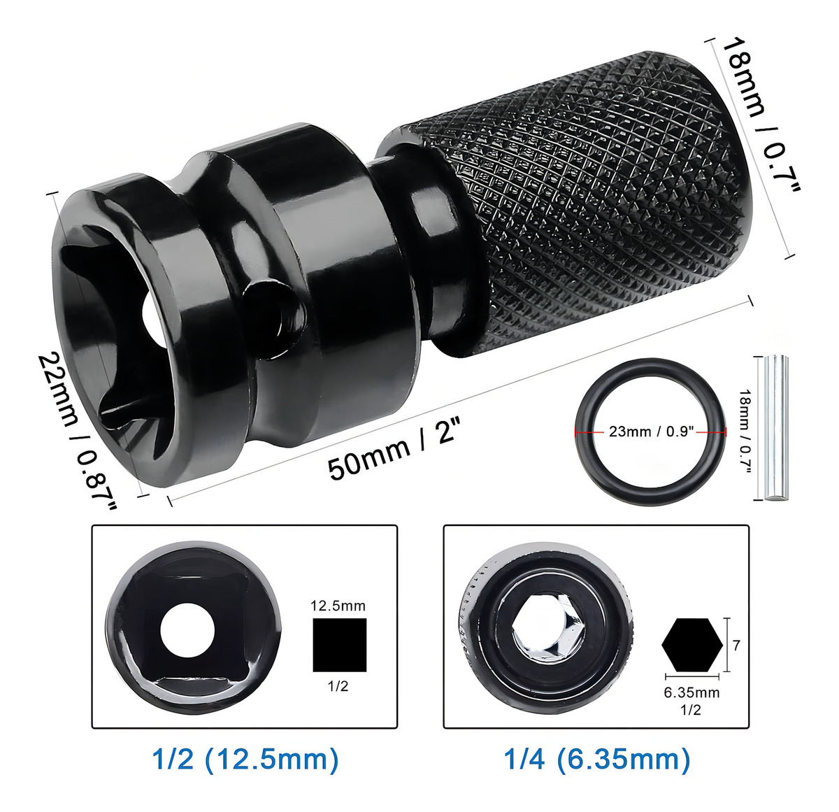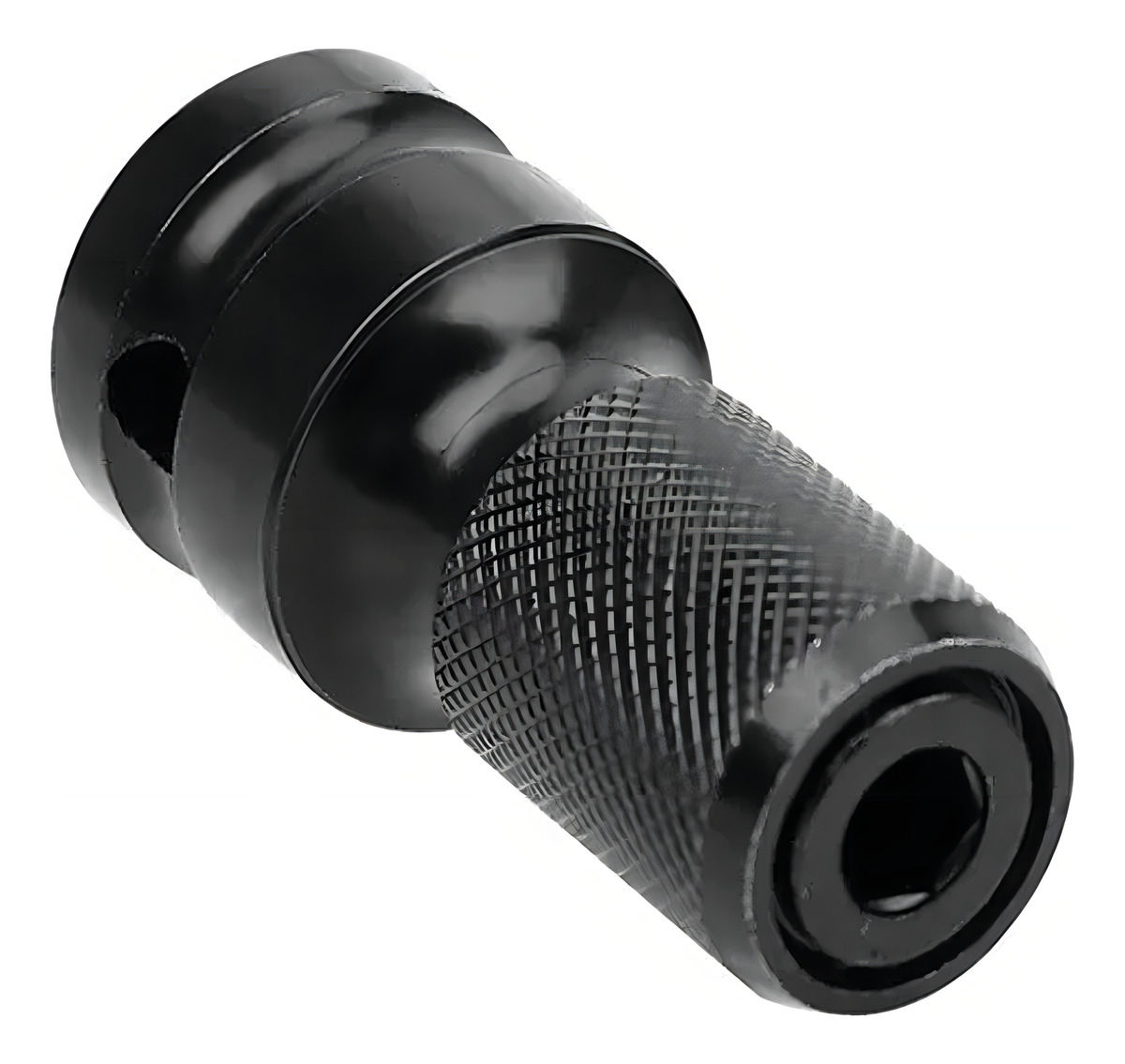 Este es un adaptador para llaves de impacto de 1/4 de pulgada, diseñado para usarse con brocas con un conector de 1/2 pulgada. Se puede conectar a herramientas neumáticas para su uso con brocas, lo que facilita y agiliza el trabajo. La instalación es sencilla, basta con deslizar un lado de la herramienta eléctrica y el otro lado se puede fijar a la broca que prefiera. Está fabricado en acero al carbono con revestimiento de electroforesis.
