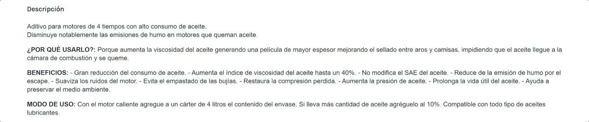 Aditivo Anti Humo No Smoke 400 Cm Bardahl cantidad