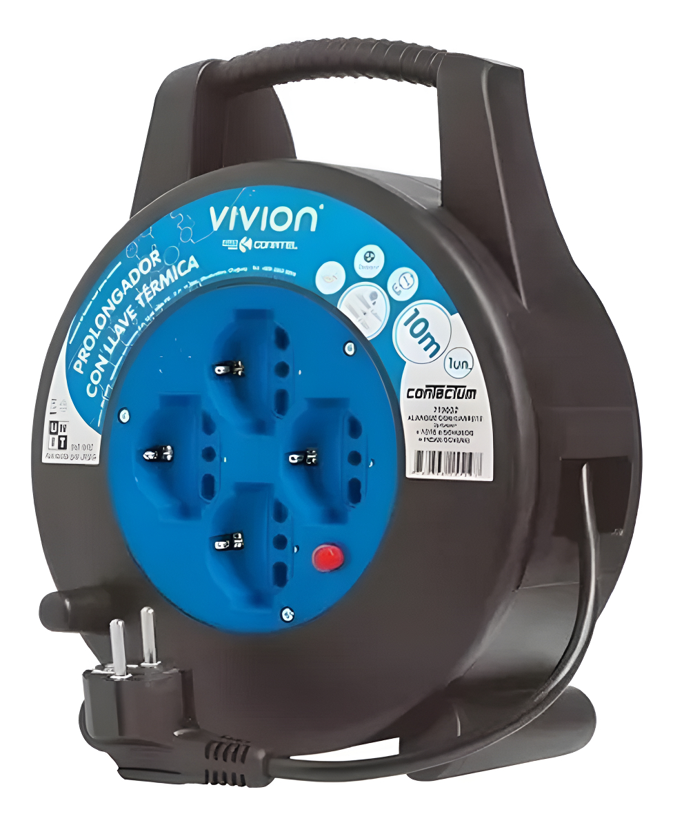 / Alargue Carrete Enrollador 10 Metros – 4 Tomas Shucko Vivion