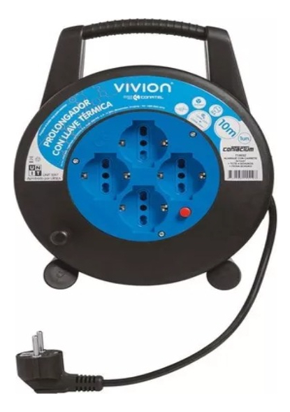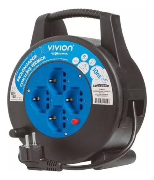 Maximice la eficiencia y seguridad de su espacio de trabajo o hogar con el Alargue Carrete Enrollador 4 Tomas Shucko Vivion de 10 metros. Este dispositivo de alta calidad, diseñado por la reconocida marca Vivion, es la solución ideal para extender el alcance de su energía eléctrica con facilidad y confiabilidad. Su cable de 10 metros le ofrece la flexibilidad necesaria para trabajar cómodamente a distancia de la fuente de alimentación, manteniendo su entorno ordenado y libre de enredos.
