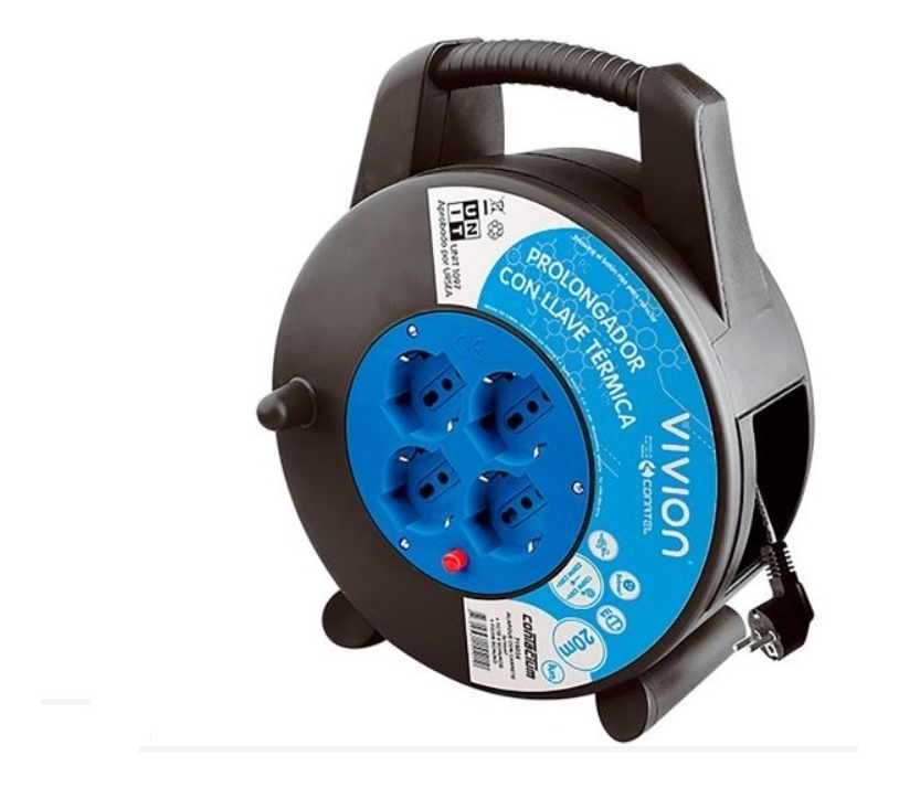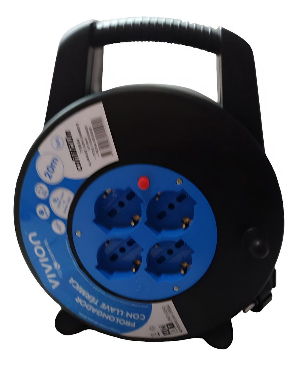 Alargue Enrollador Carrete 20 Metros 4 Tomas Vivion Color Negro cantidad