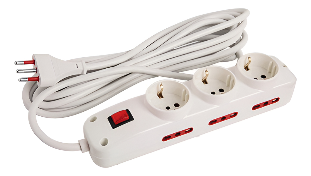 Este alargue cuenta con tres tomas tipo Schuko y seis tomas modulares, ideal para conectar múltiples dispositivos simultáneamente. Incorpora una llave de encendido para mayor seguridad y control, permitiendo cortar la corriente sin necesidad de desenchufar el aparato. Su longitud de 5 metros ofrece flexibilidad y comodidad para usarlo a una distancia considerable de la toma de corriente. El diseño robusto y la construcción de calidad aseguran durabilidad y un rendimiento confiable.