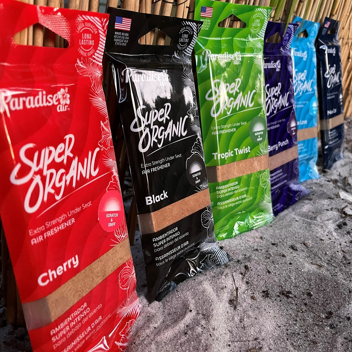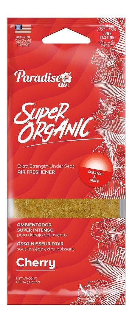 El Ambientador Super Organic Cherry X1 Und de la marca Paradise Air es la opción perfecta para mantener tu hogar o espacio de trabajo siempre fresco y agradable. Este ambientador, en formato orgánico, está diseñado para brindarte una experiencia única y duradera.