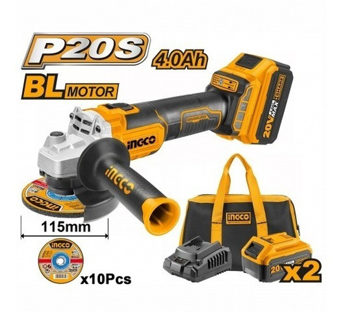 Amoladora A Batería Brushless Ingco 2bat Cagli2011582 – Smf Color Anaranjado