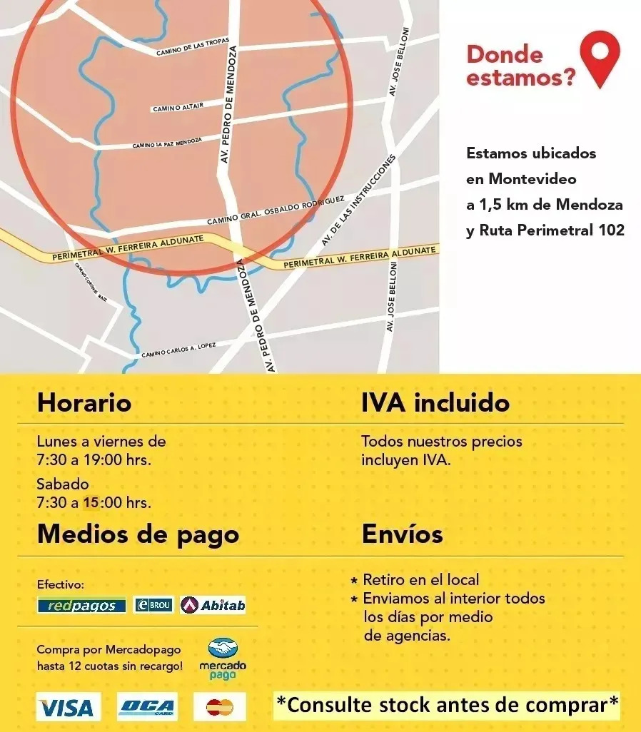 • Medios de Pago: Efectivo, Redpagos, Redbrou, Abitab, o compra por MercadoPago hasta 12 cuotas sin recargo!