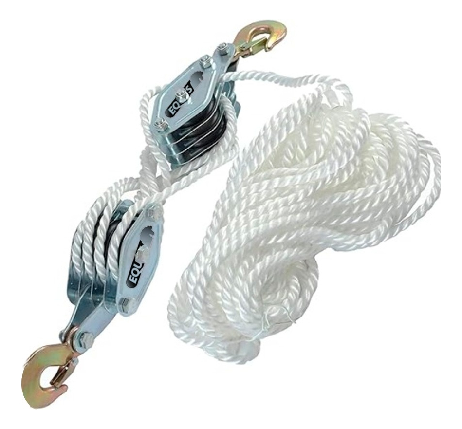 La carcasa del bloque de rueda y el sistema Tackle está hecha de acero galvanizado para resistir el desgaste, los ganchos de seguridad mantienen el polipasto en su lugar de forma segura.