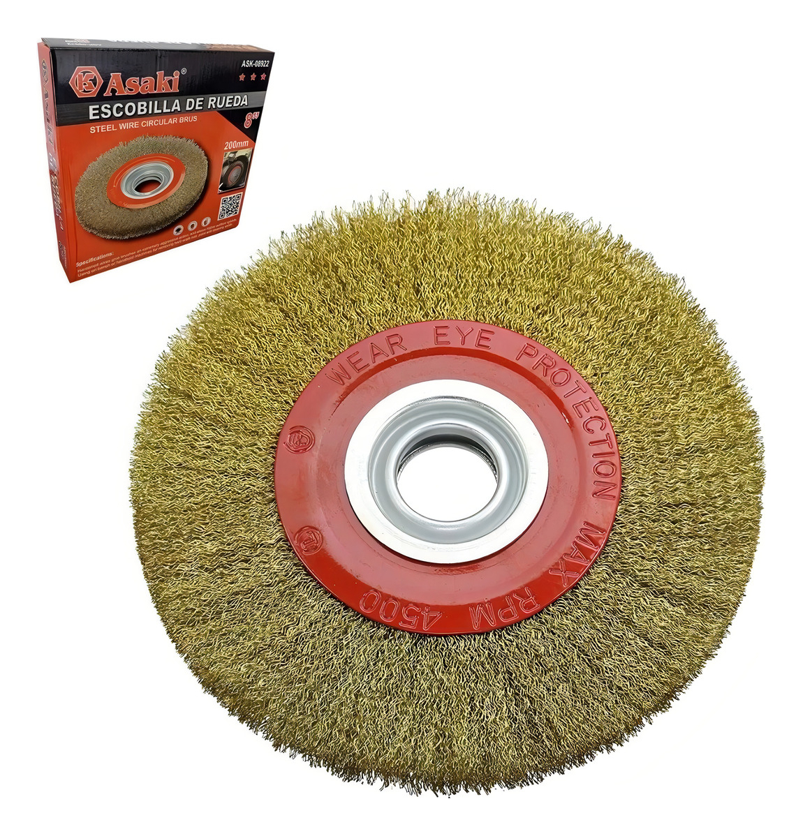 El Cepillo de Alambre para Amoladora de Banco Asaki ASK1111 es una herramienta diseñada para pulir, desbarbar y limpiar superficies metálicas y no metálicas. Con un diámetro de 8 pulgadas (200 mm) y cerdas de bronce, ofrece durabilidad y eficiencia en trabajos de acabado. Su diseño permite una instalación sencilla en diversas amoladoras de banco, gracias a su apertura de 7/8″ (22.2 mm) y lavadora de 5/8″ (15.9 mm). Ideal para quienes buscan resultados profesionales en sus proyectos de carpintería, herrería y mantenimiento industrial.