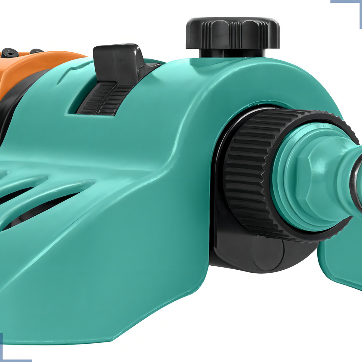 Con un acoplamiento rápido y un cuerpo de plástico de alta resistencia, el aspersor también cuenta con un riego preciso y coordinado, lo que facilita la ejecución del trabajo.