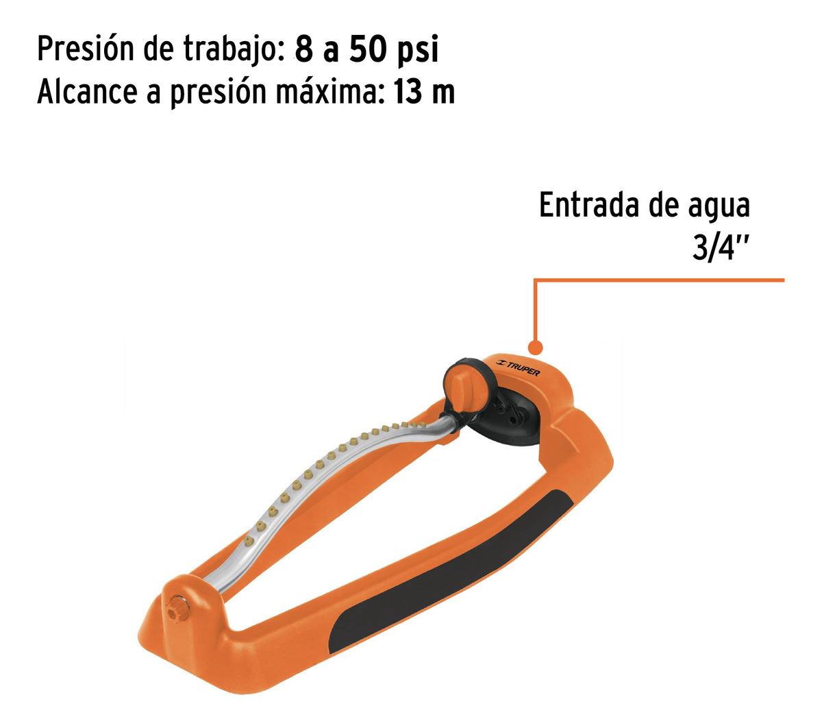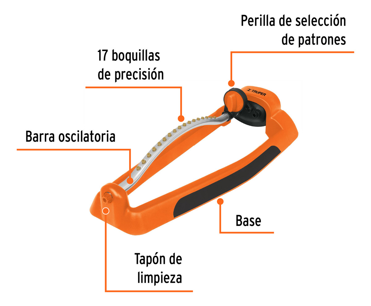 El Aspersor Oscilatorio, Metal-plástico, Truper 10363 es un producto de alta calidad diseñado para satisfacer tus necesidades de riego. Este aspersor, fabricado por la reconocida marca Truper, combina la durabilidad del metal con la ligereza del plástico, creando un producto resistente y fácil de manejar. Cuenta con una perilla para seleccionar patrones de riego, permitiéndote personalizar el riego según las necesidades de tu jardín.