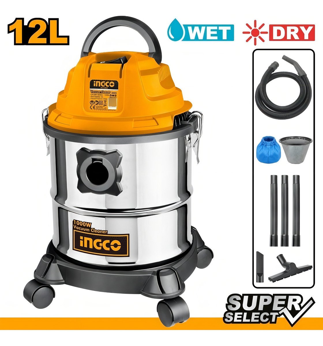 La línea Super Select de Ingco se destaca por su calidad y durabilidad, por lo que puedes confiar en que esta aspiradora te acompañará durante mucho tiempo. Además, su modelo VC12202 es perfecto para uso industrial, garantizando resultados profesionales en cada limpieza.