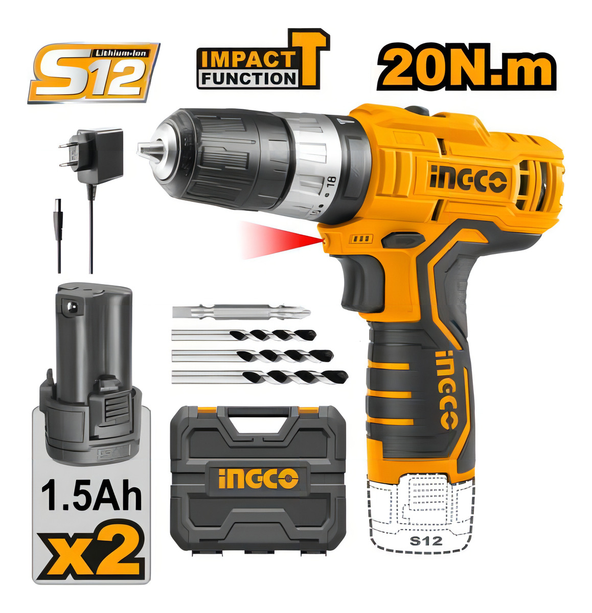 Atornillador Percutor 12v S12 X2 Baterias Ingco Cidli12201 Amarillo
