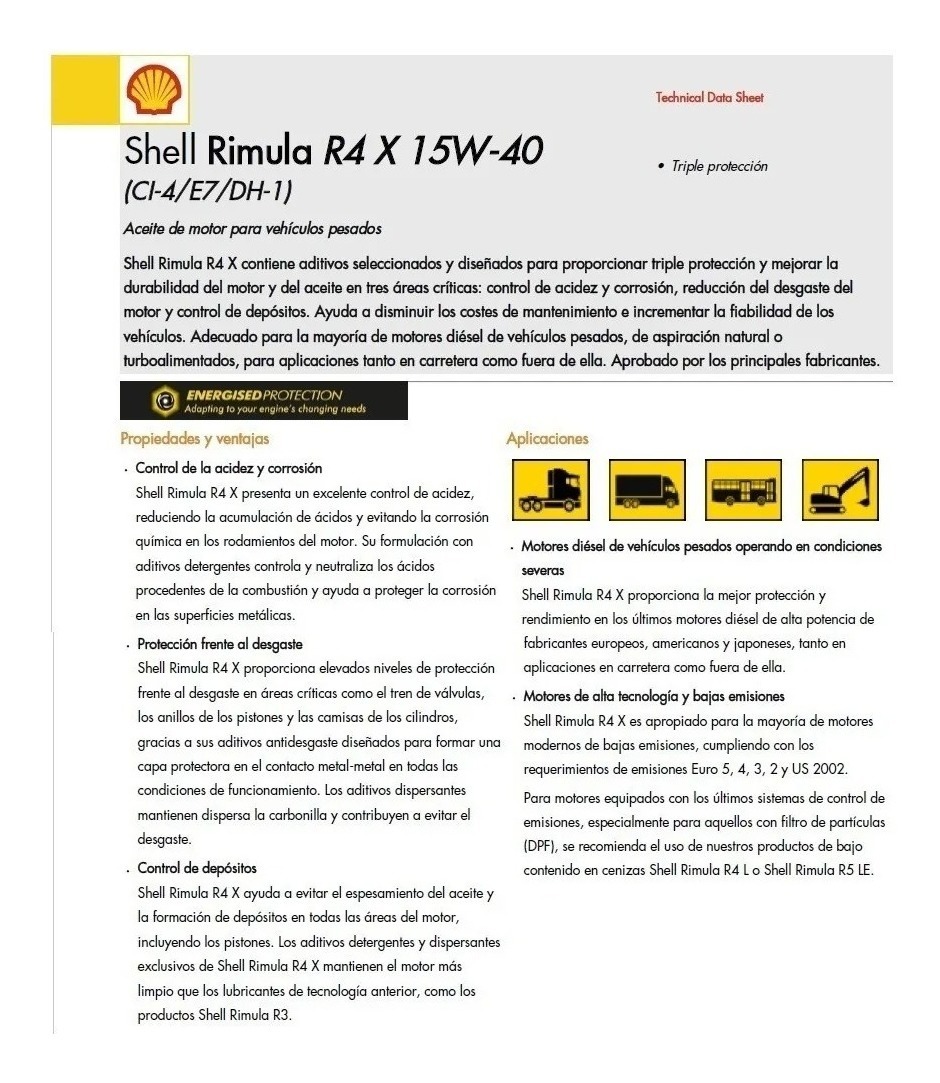 – Especificaciones: API: CI-4, CH-4, CG-4, CF-4, CF.SL