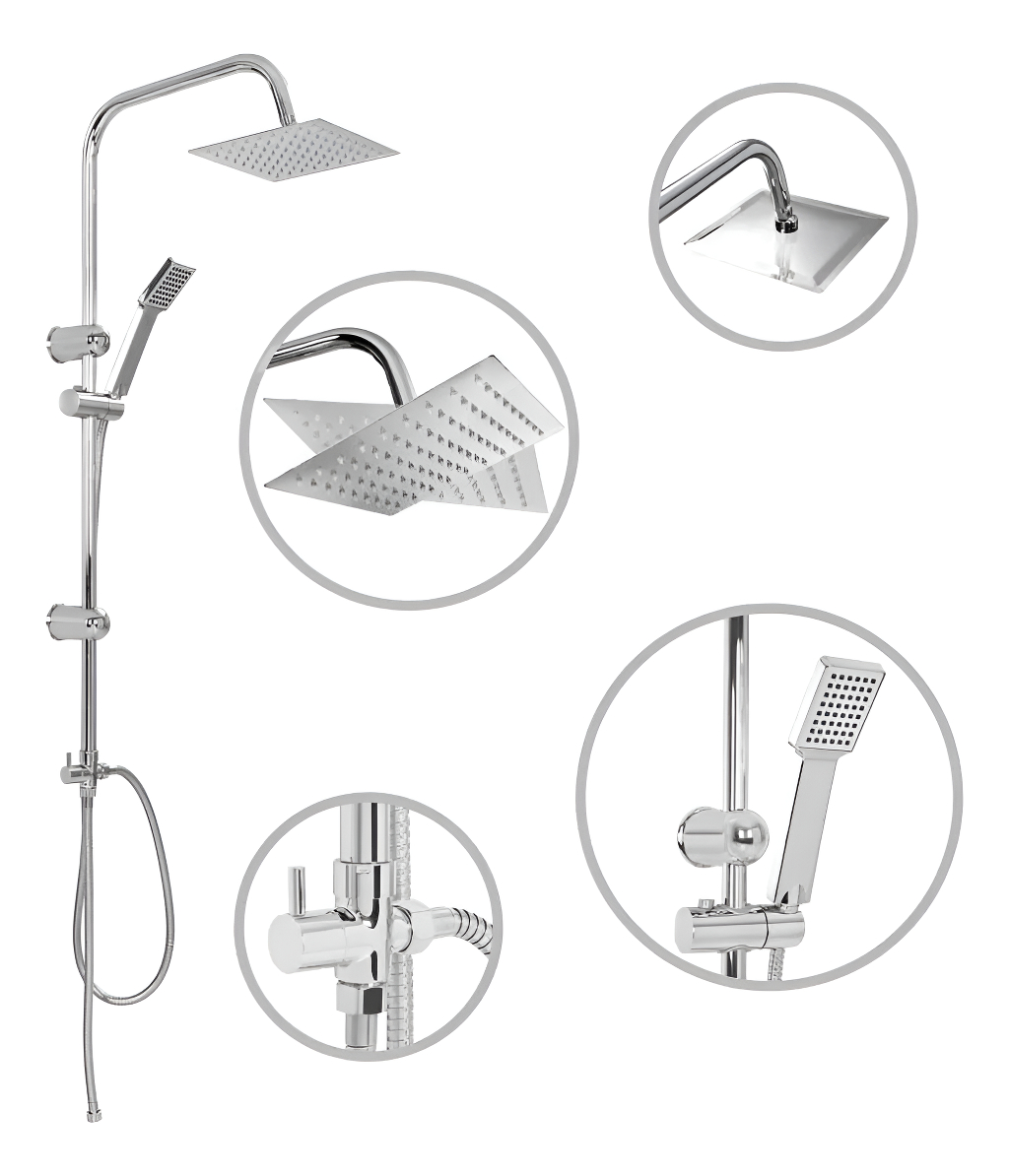 Barral de ducha regulable con Roseta gigante de 29 x 19 cm y teléfono de mano con sistema anticalcareo, Se conecta a su ducha grifería exterior a través de la colilla inferior. Diseño y calidad para decorar su baño con con el mejor respaldo.