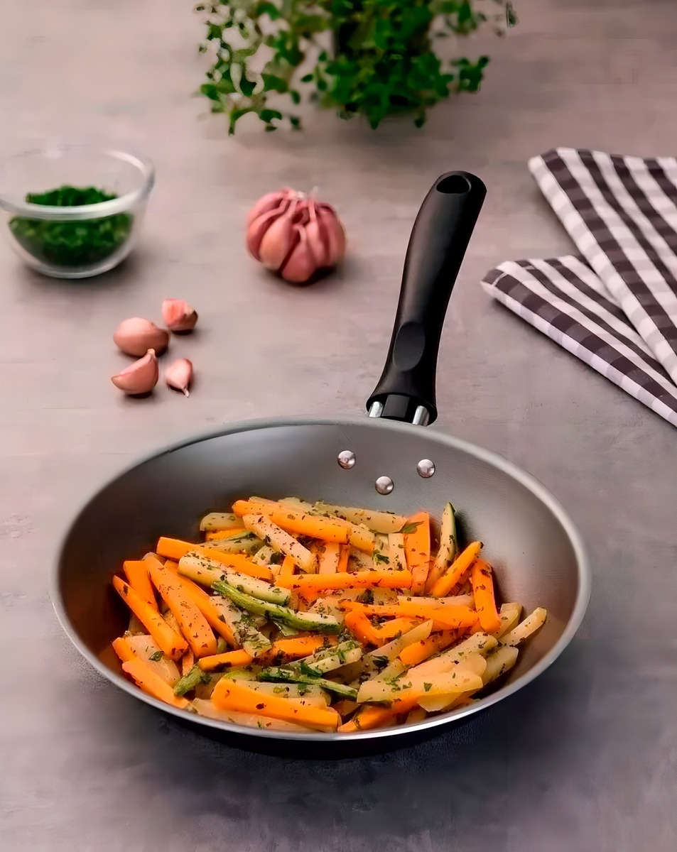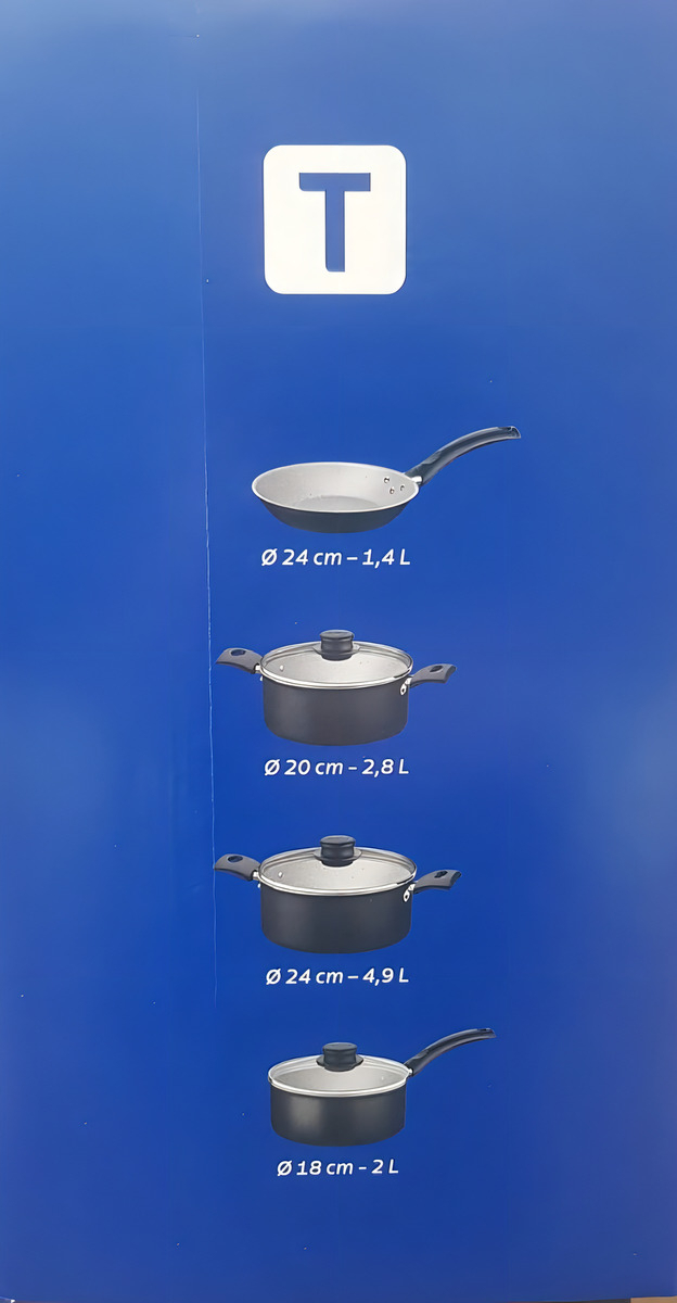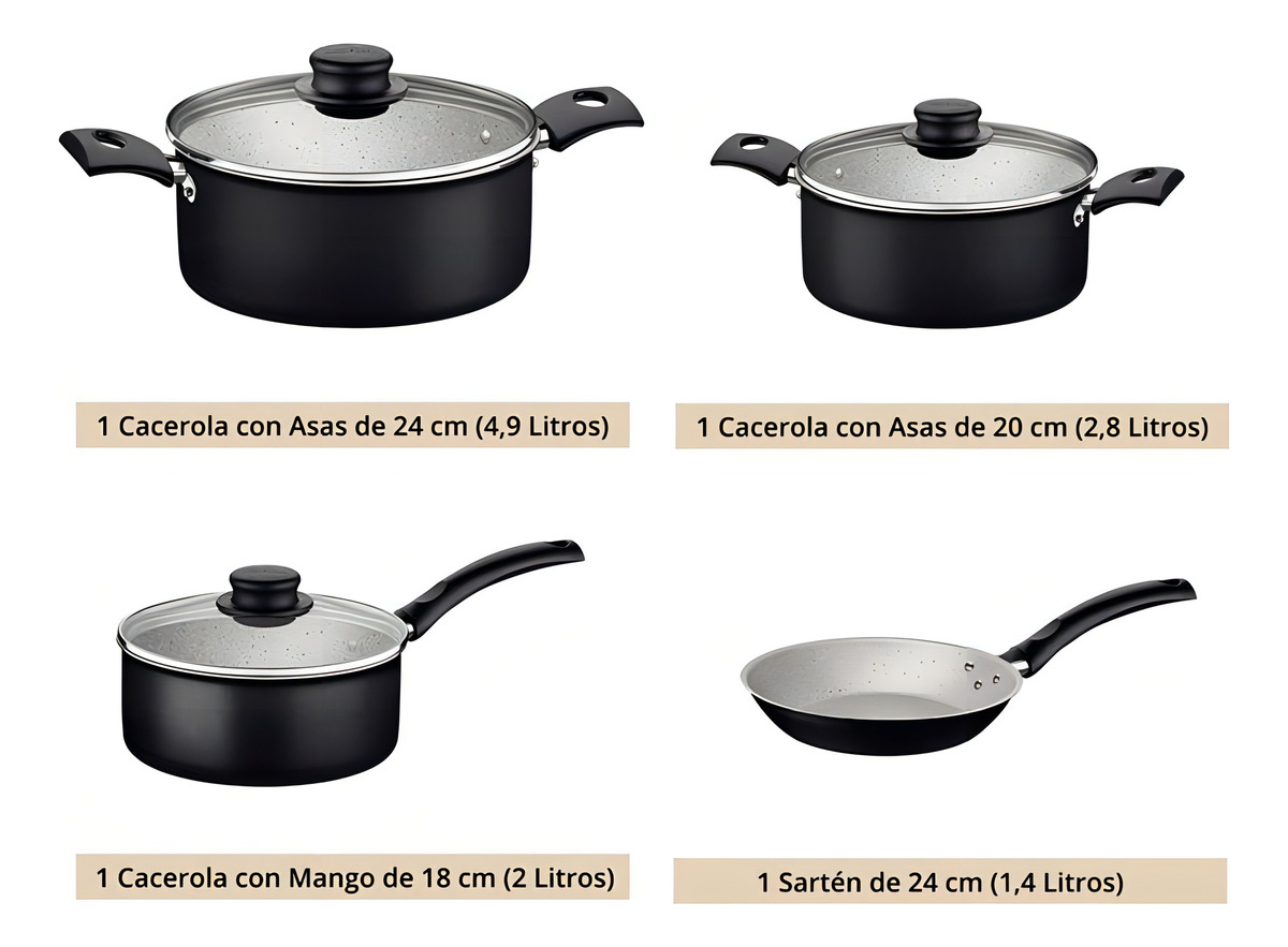 La batería de cocina está compuesta por piezas con cuerpo de Aluminio con un espesor que brinda una cocción rápida y uniforme. Cuentan con un revestimiento interno y externo de anti-adherente Starflon Max, que no deja que se peguen los alimentos y es fácil de limpiar, más durable y no perjudicial para la salud, ya que está libre de PFOA. Sus tapas son de vidrio templado con bordes de acero inoxidable y sus mangos son asas de baquelita anti-térmica y agarradores de nylon que proporcionan seguridad durante la manipulación.