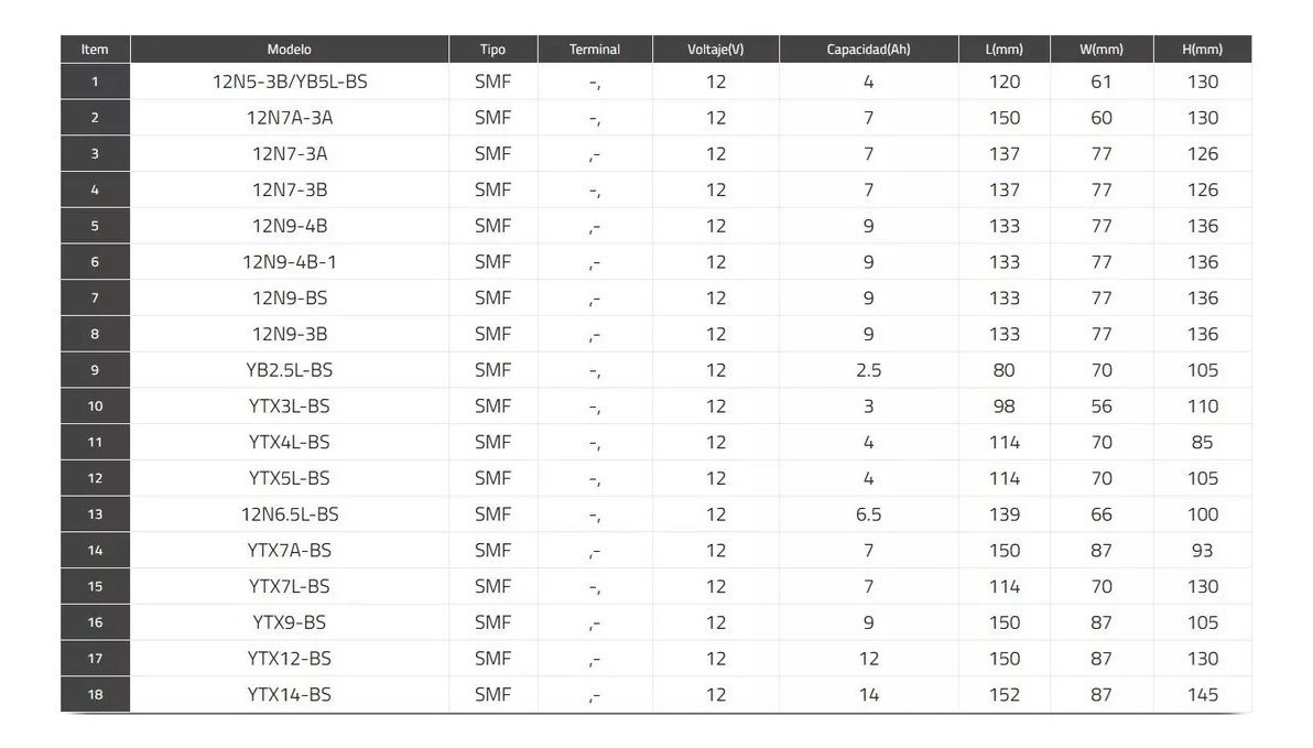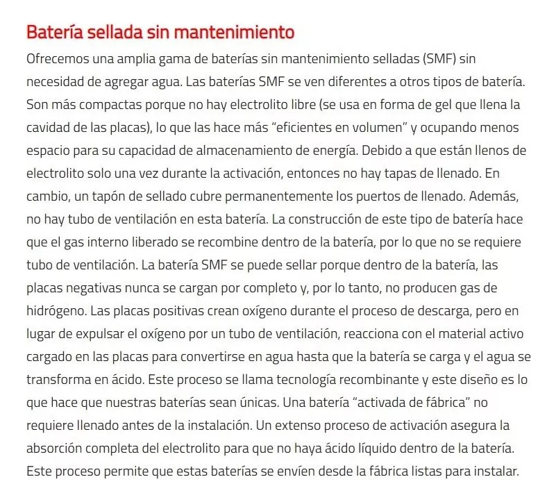 BATERIA SELLADA SIN MANTENIMIENTO (SMF)