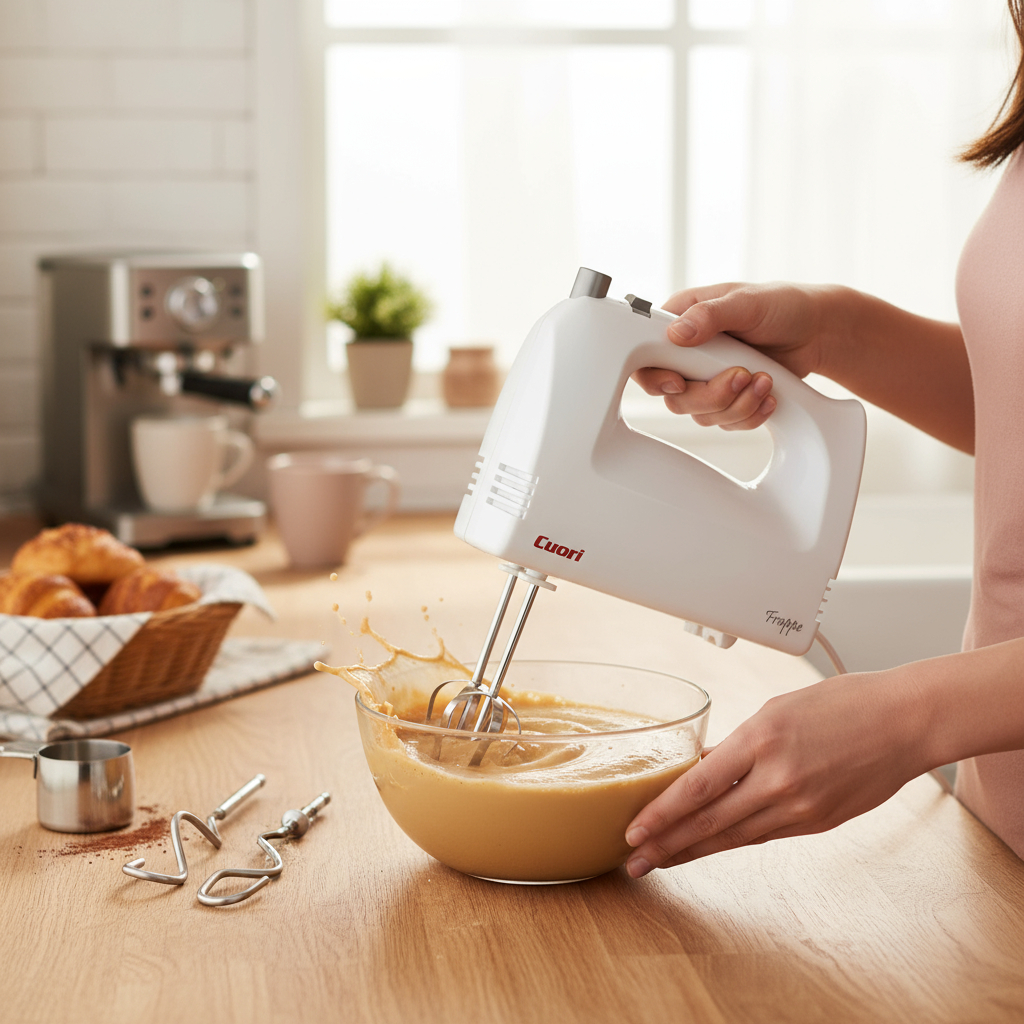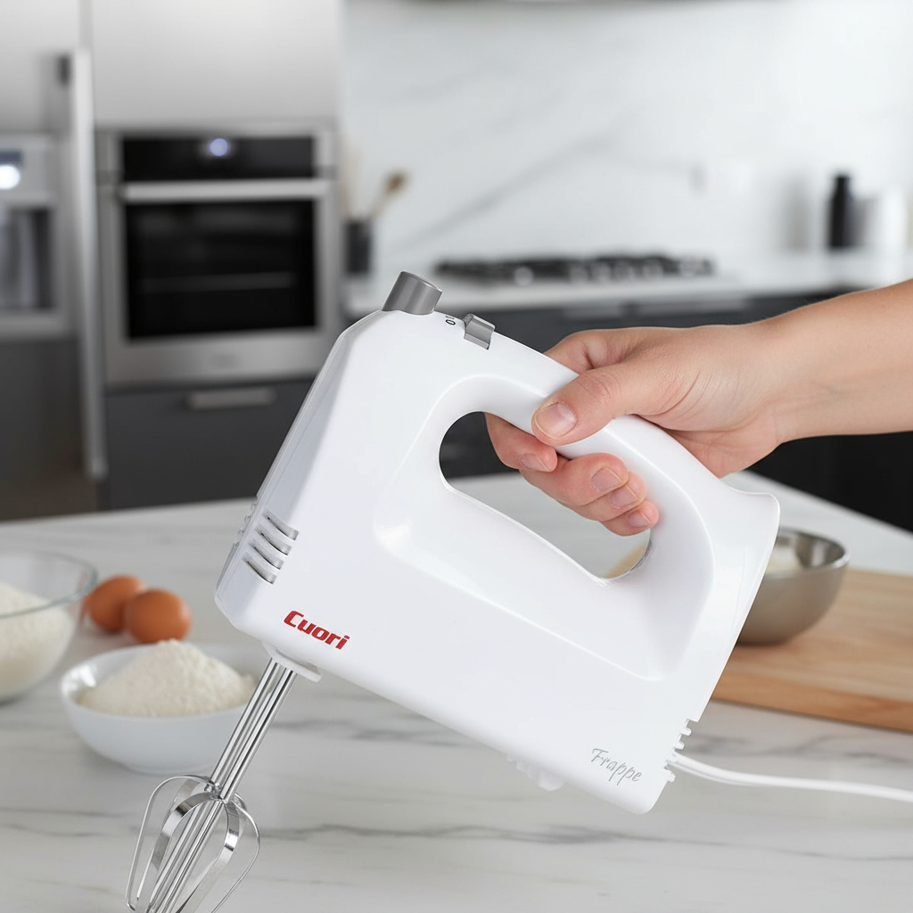 La batidora Cuori Frappe es práctica y sencilla de usar. Su diseño compacto y de fácil agarre te permitirá batir mezclas esponjosas sin forzar tus brazos y muñecas. Podrás moler ingredientes en el mismo recipiente en el que se preparan y utilizarla para hacer diferentes tipos de purés, salsas y sopas.