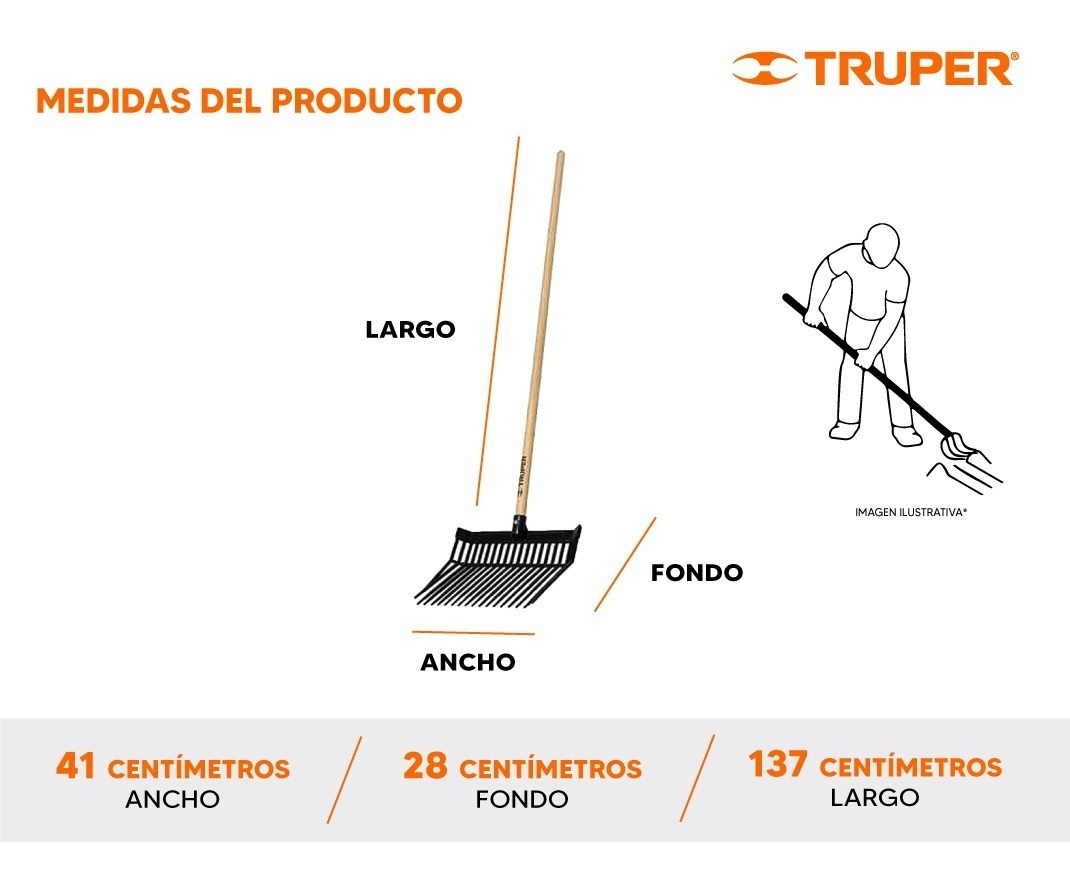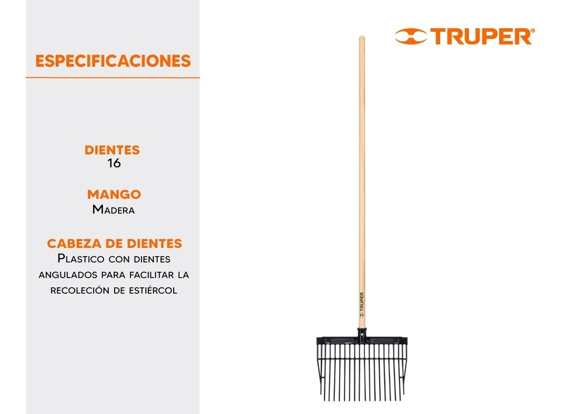 Bieldo Cabeza Plástica Mango Madera16 Dientes Truper 19998