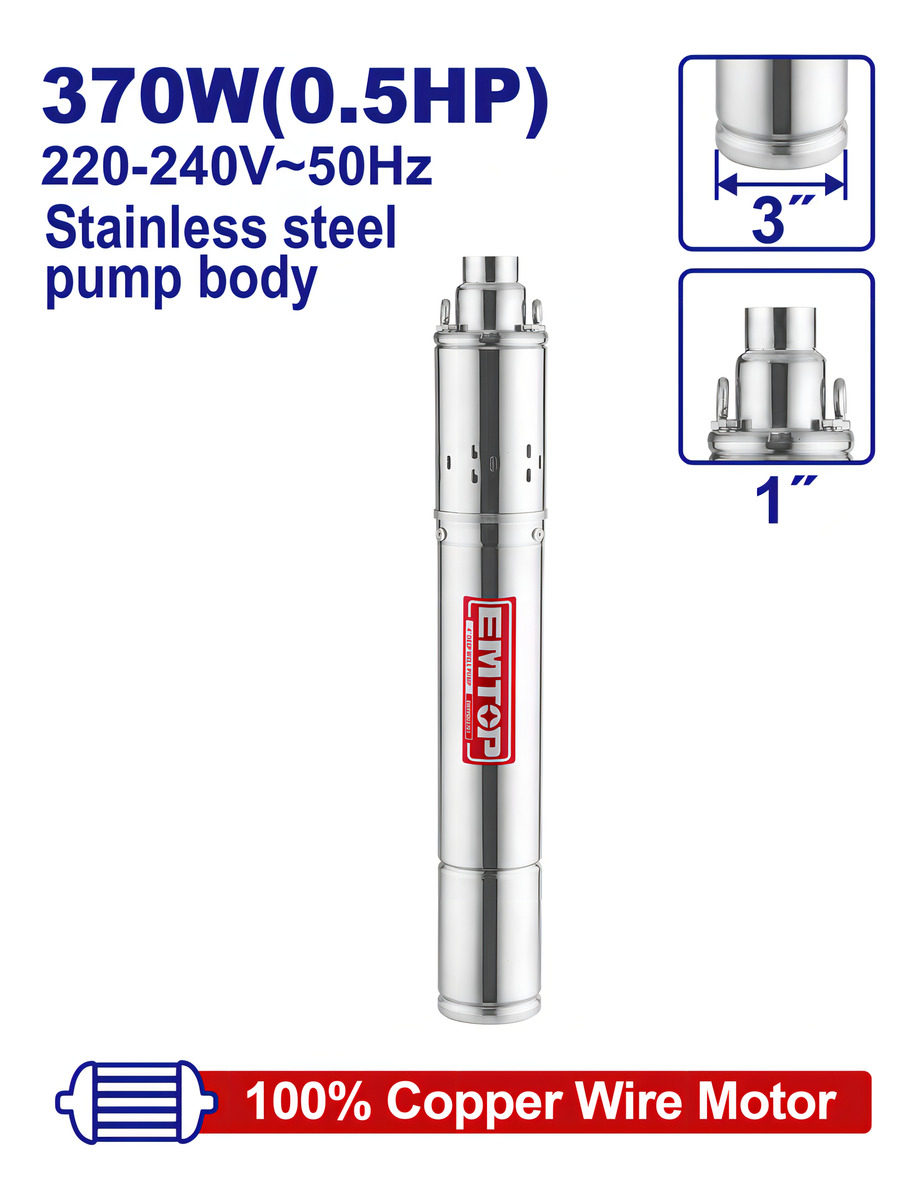 La bomba sumergible tipo gusano Emtop EWPPWS03701 es la solución ideal para quienes buscan eficiencia y potencia en el manejo de agua. Con una potencia de 370 W y una capacidad de caudal máximo de 25 litros por minuto, esta bomba es perfecta para aplicaciones que requieren un rendimiento constante y confiable.