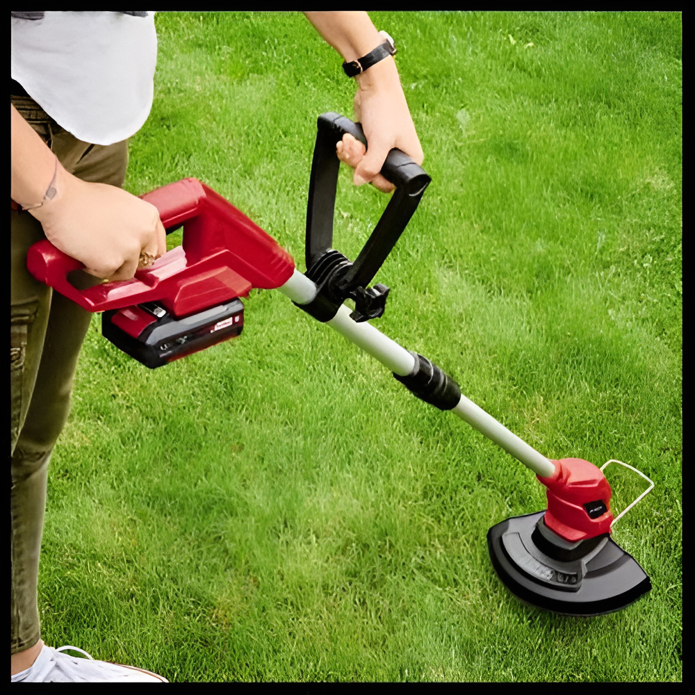 Con la recortadora de césped con batería GC-CT 18/24 Li – Solo de Einhell se puede dar forma rápidamente al jardín y superficies de césped con esquinas y bordes. El verde doméstico se recorta de forma rápida y cómoda, y esto de manera totalmente flexible. La recortadora de césped con batería es un potente miembro de la serie del sistema Power X-Change. Las baterías de la familia del sistema se pueden utilizar en todos los aparatos de la serie en la zona del jardín y taller. La recortadora de césped está equipada con el dispositivo Flowerguard de Einhell. Las flores y plantas ornamentales se protegen de forma efectiva contra el deterioro. El larguero guía telescópico sin escalonamiento se ajusta completamente a las necesidades del jardinero doméstico y permite así trabajar sin fatiga. Con un giro de la cuchilla de 8.500 rpm, la recortadora de césped con batería es un ayudante equipado de forma enérgica y proporciona un verde cuidado en el césped, zonas exteriores y puntos difícilmente accesibles en el jardín. La anchura de corte de la cuchilla es de 24 centímetros. Al alcance del envío pertenecen 20 unidades de cuchillas de plástico. La batería Power X-Change y el cargador son adquiribles por separado, por ejemplo, como práctico set para principiantes.