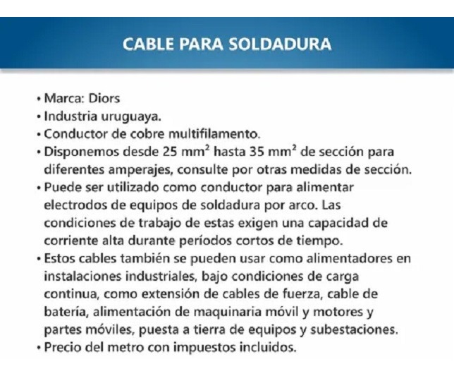 * Disponemos desde 25 mm² hasta 35 mm² de sección para diferentes amperajes, consulte por otras medidas de sección.