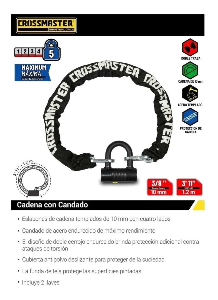 • Eslabones de cadena templados de 1O mm con cuatro lados