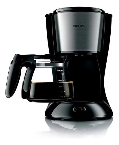La luz roja del botón de encendido se ilumina cuando la cafetera está encendida.