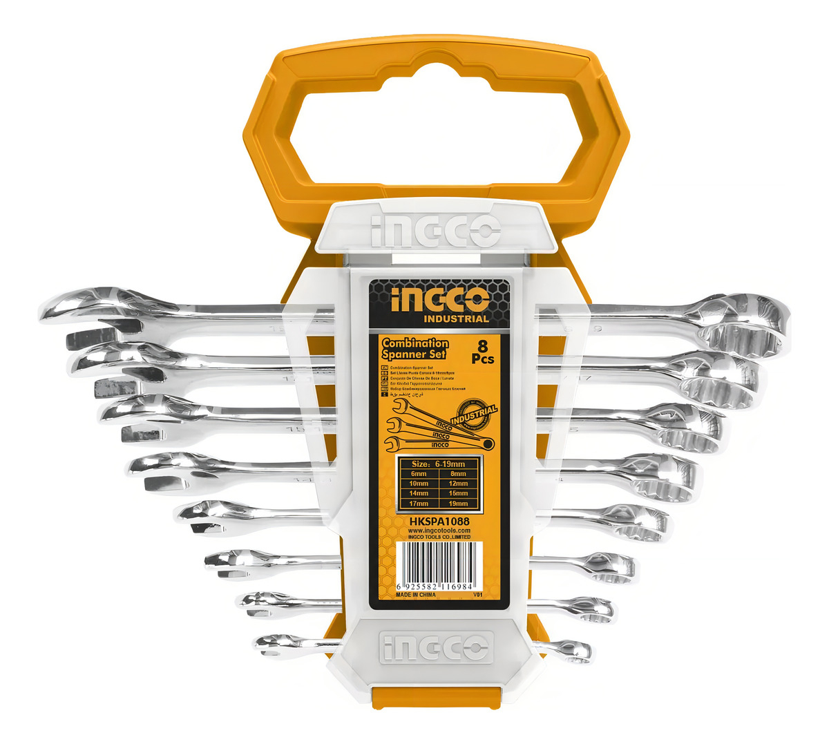 – Juego de llaves combinadas HKSPA1088 (8 piezas) – Tamaños 6-19mm, pulido fino.
