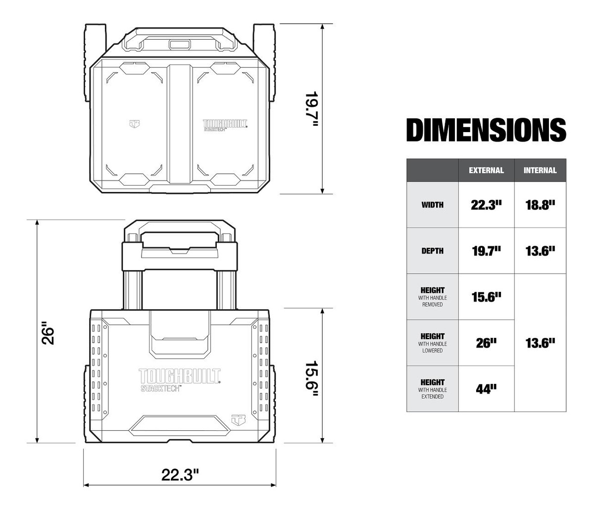 Caja De Herramientas Maciza Con Ruedas Toughbuilt Stacktech Color Negra cantidad