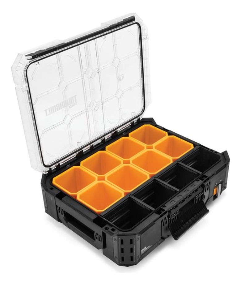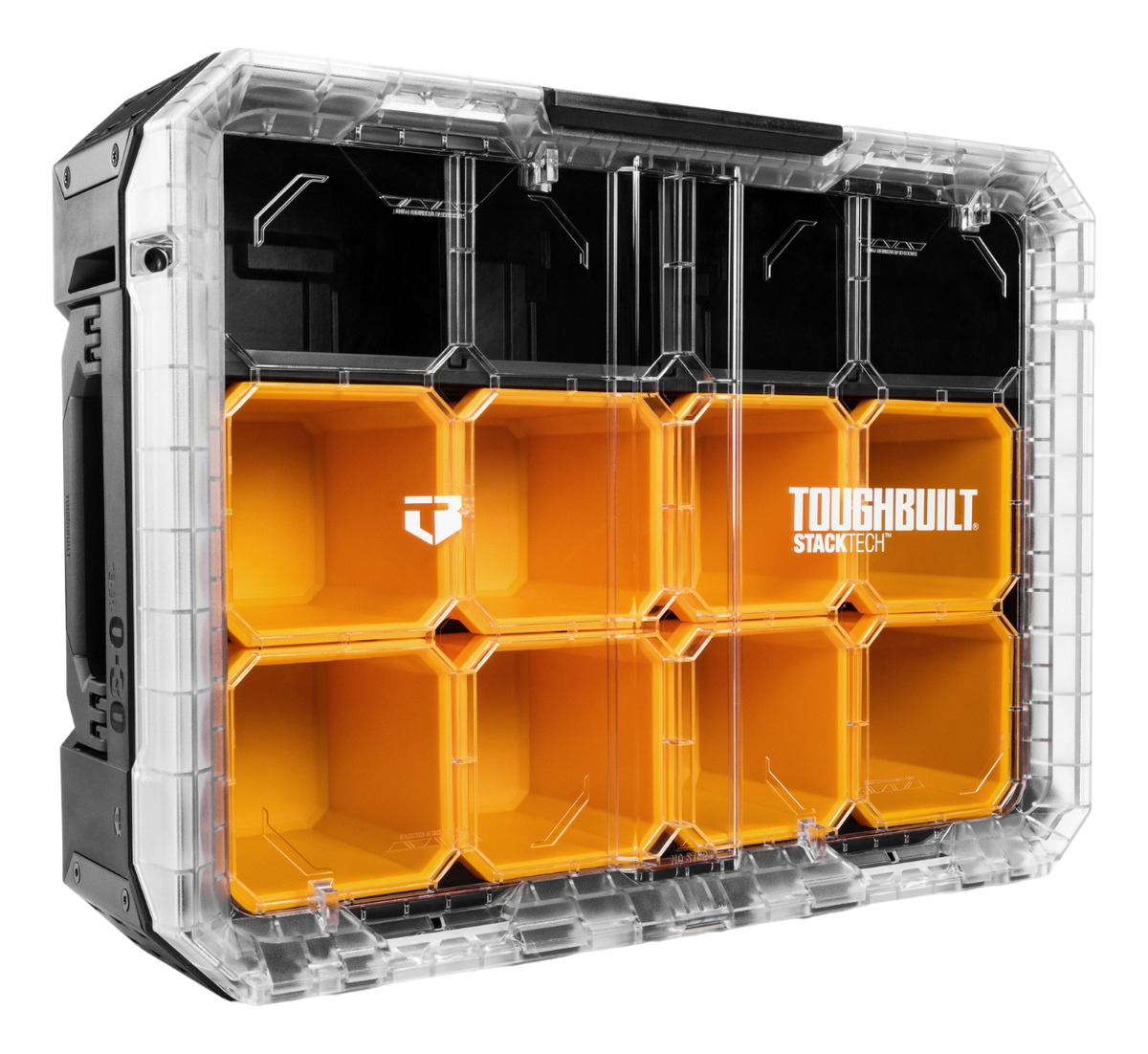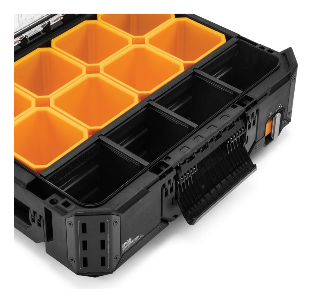 El organizador Stacktech mantiene a los profesionales organizados de manera eficiente. Tiene tapa transparente autoalineable, bloqueo seguro y cierre central para fácil acceso. Ofrece 8 compartimentos, 4 divisores y rieles para personalización. Construido para una alta durabilidad, tiene esquinas reforzadas, cubierta de acero y protección IP65. Los puntos de bloqueo dobles garantizan la seguridad durante el transporte y el uso.