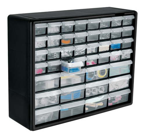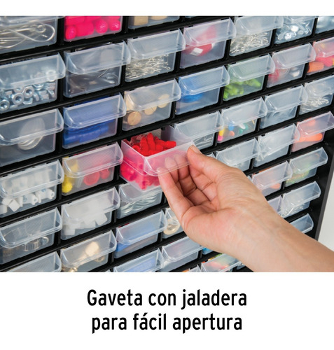 Fabricado en polipropileno, este organizador es resistente a impactos, lo que garantiza su durabilidad y protege tus herramientas y accesorios de daños. Además, su diseño con 44 gavetas apilables te permite clasificar y organizar tus ítems de manera eficiente, facilitando su localización cuando los necesites.