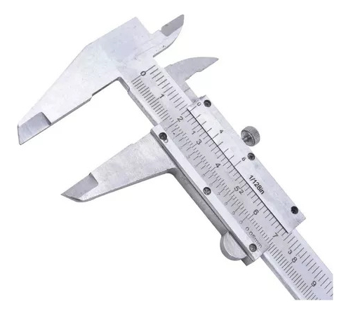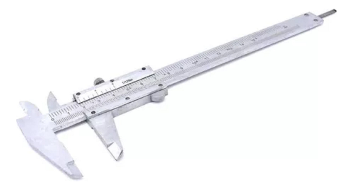 Ideal para la medición de espesores, diámetros interiores y exteriores. También para mediciones de profundidad. Medición en pulgadas y centímetros. Incluye rueda en la parte superior para fijar la medida.