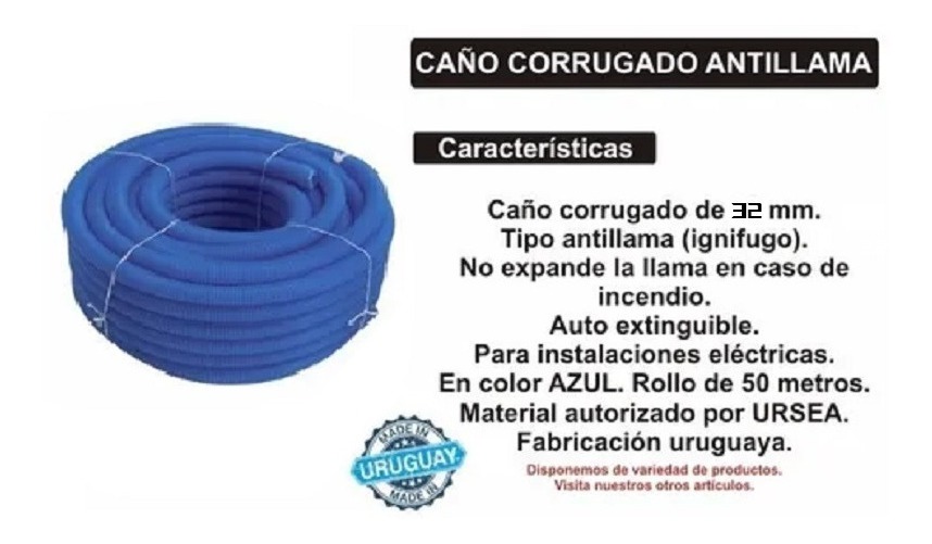Caño Corrugado Azul Ignifugo Antillama 20 Mm X 50 Metros