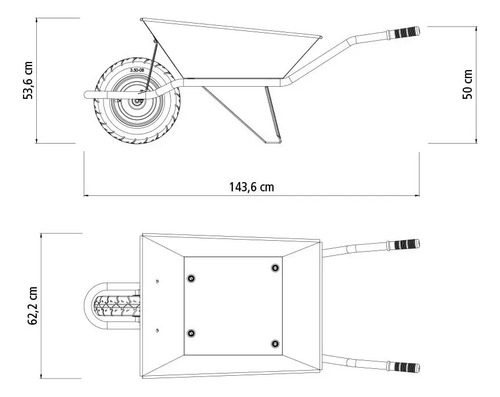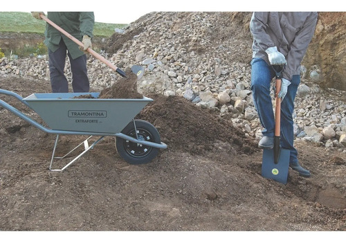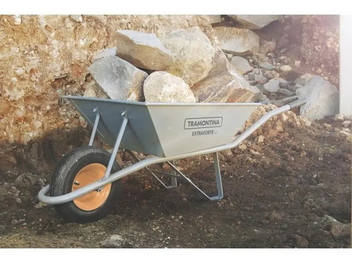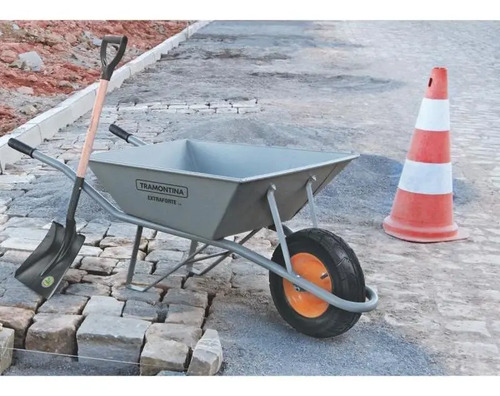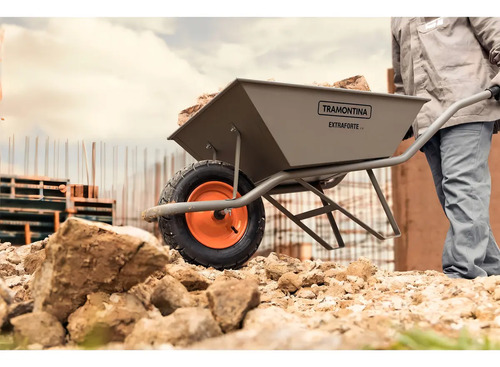 Extra Strong con cubeta metálica extra fuerte gris de 65 L, brazo metálico y neumático entubado. Su cubeta metálica tiene un refuerzo especial, que permite el transporte y la carga de cargas de hasta 65 litros. Sus brazos son metálicos, también de color gris y garantizan un manejo súper seguro. ¡Artículos prácticos y de gran durabilidad que puede encontrar con Tramontina!