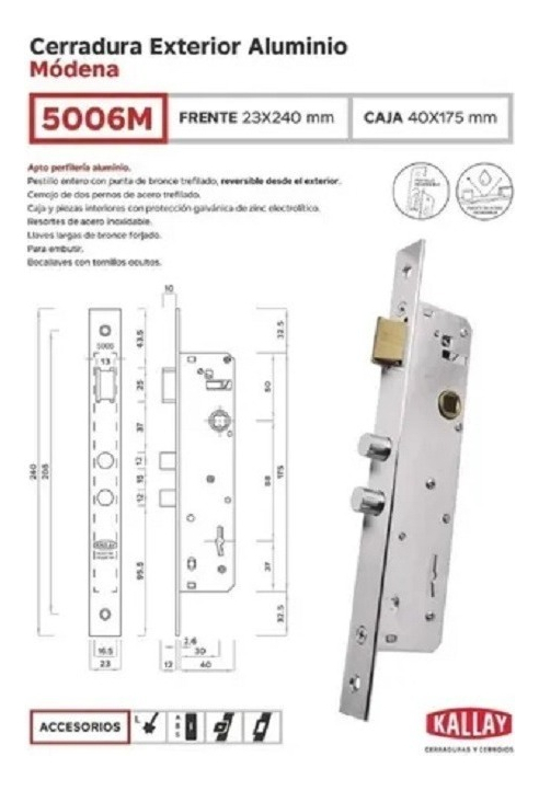 Cerradura Kallay 5006 Unidireccional Puerta Aluminio Abatible
