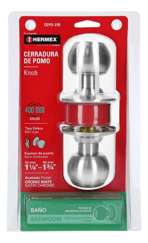 Cerradura Pomo Oval Cromad. Sistema Llave Hermex Cepo