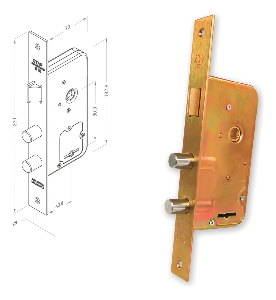 La Cerradura Star 810 Pasador Redondo es la solución perfecta para quienes buscan seguridad y durabilidad en sus puertas. Fabricada en hierro, esta cerradura unidireccional cuenta con un diseño robusto que garantiza una larga vida útil. Su acabado bicromatado no solo le proporciona un aspecto elegante, sino que también la hace resistente a la corrosión, ideal para su uso en exteriores. La instalación empotrable es sencilla, lo que la convierte en una opción accesible para cualquier usuario. Además, es compatible con puertas de entre 32 mm y 50 mm de espesor, y se puede colocar en puertas que abran tanto a la derecha como a la izquierda. Incluye dos llaves, brindando mayor comodidad y seguridad. Con un mecanismo de alta seguridad, la Cerradura Star 810 es la elección ideal para proteger tu hogar o negocio.
