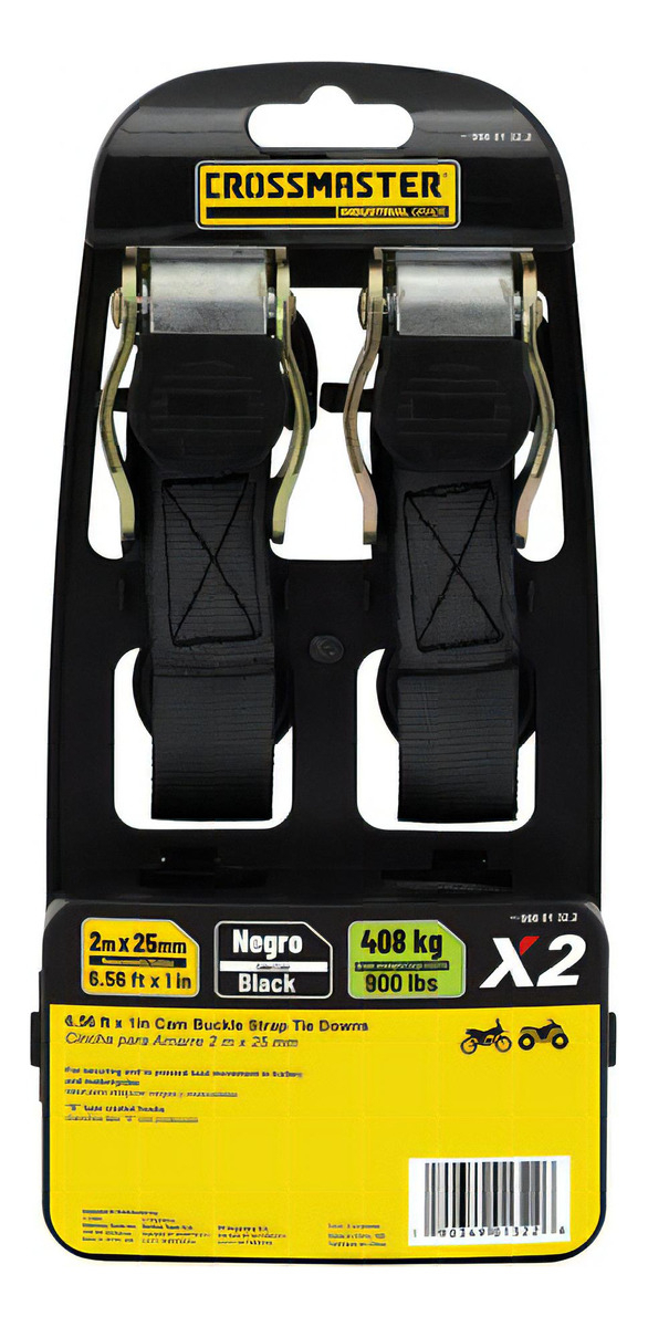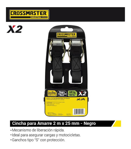 Cincha Cinta Amarre 2 Unidades 2m X 25mm 408 Kg Crossmaster Color Negro