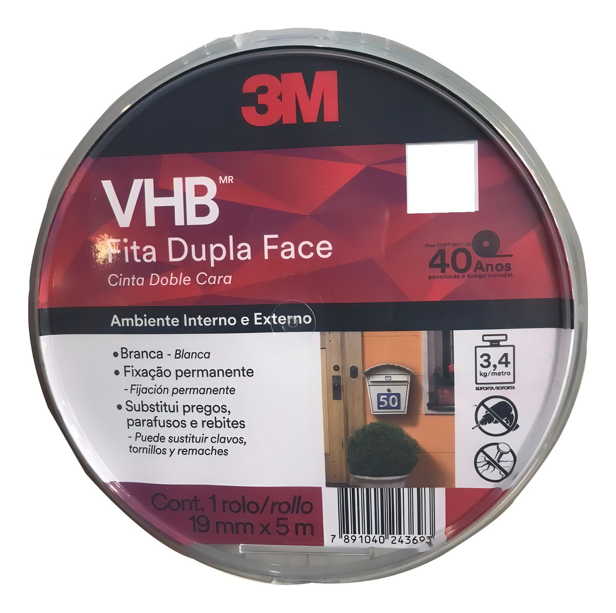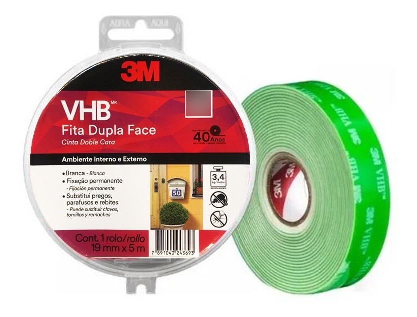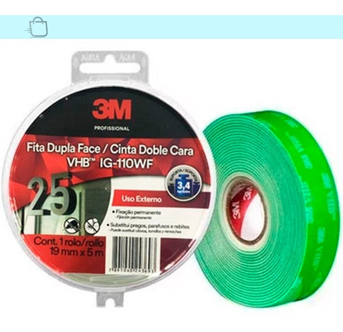 Cinta Adhesiva De Doble Cara, 3 M, Vhb Ig-110wf, 19 Mm X 5 M, Blanca, Para Uso En Exteriores, Color Blanco cantidad