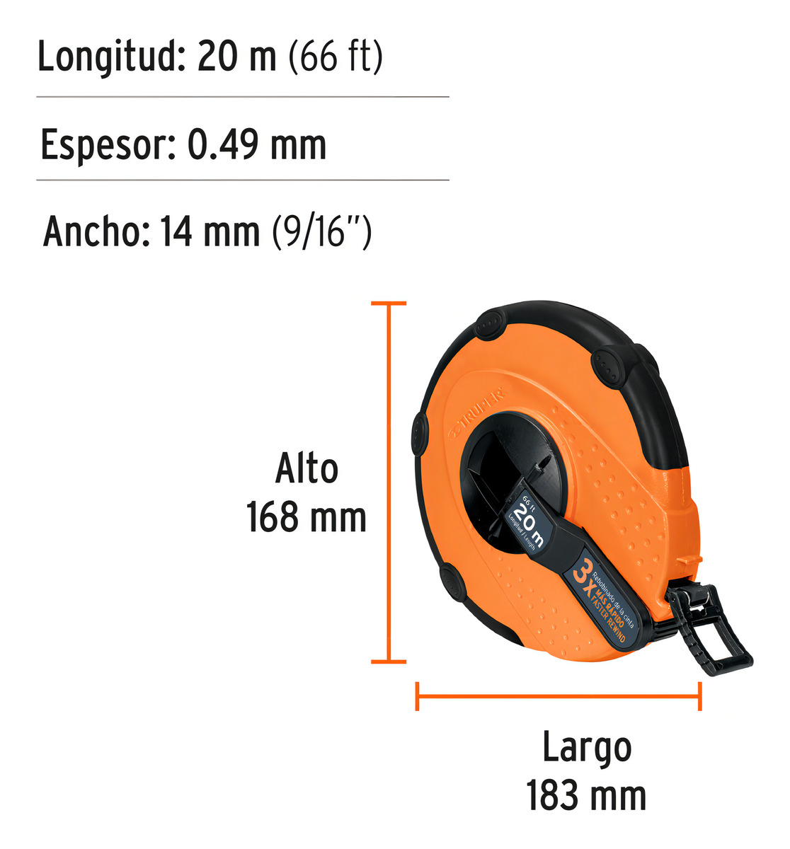 / Cinta Larga De Fibra De Vidrio De 20m Carcasa Plastico 12638