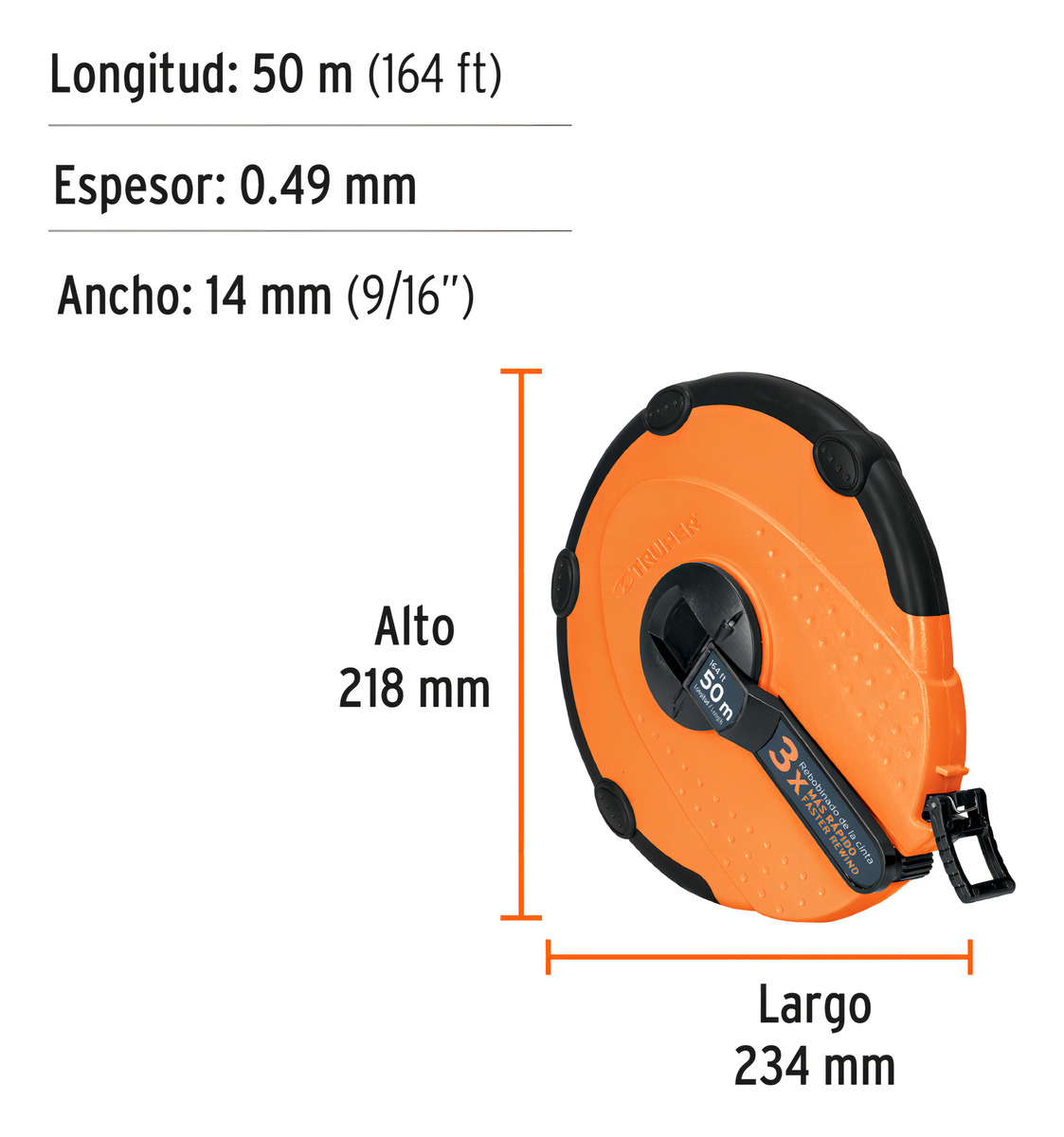 Cinta Metrica Fibra De Vidrio Cubierta Carcasa Plástica 50 M