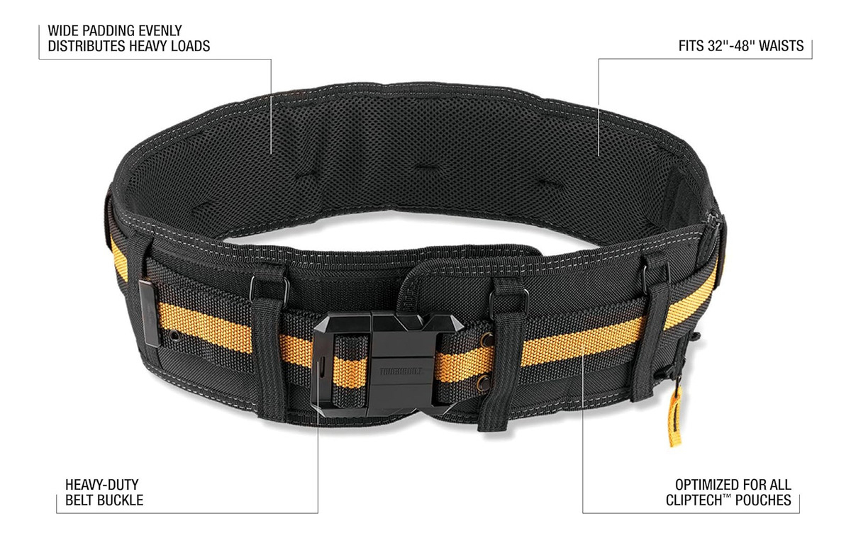 Este cinturón para bolsas porta herramientas Liniero Toughbuilt es el complemento perfecto para los profesionales que necesitan tener sus herramientas siempre a mano. Con su diseño resistente y duradero, este cinturón garantiza la seguridad y comodidad necesarias para llevar todas tus herramientas de trabajo de manera organizada.