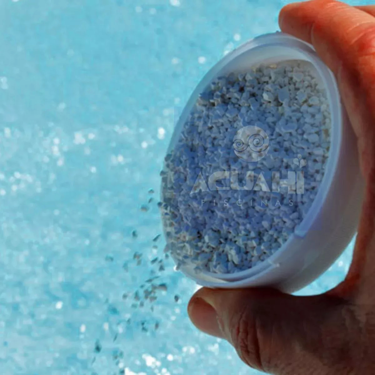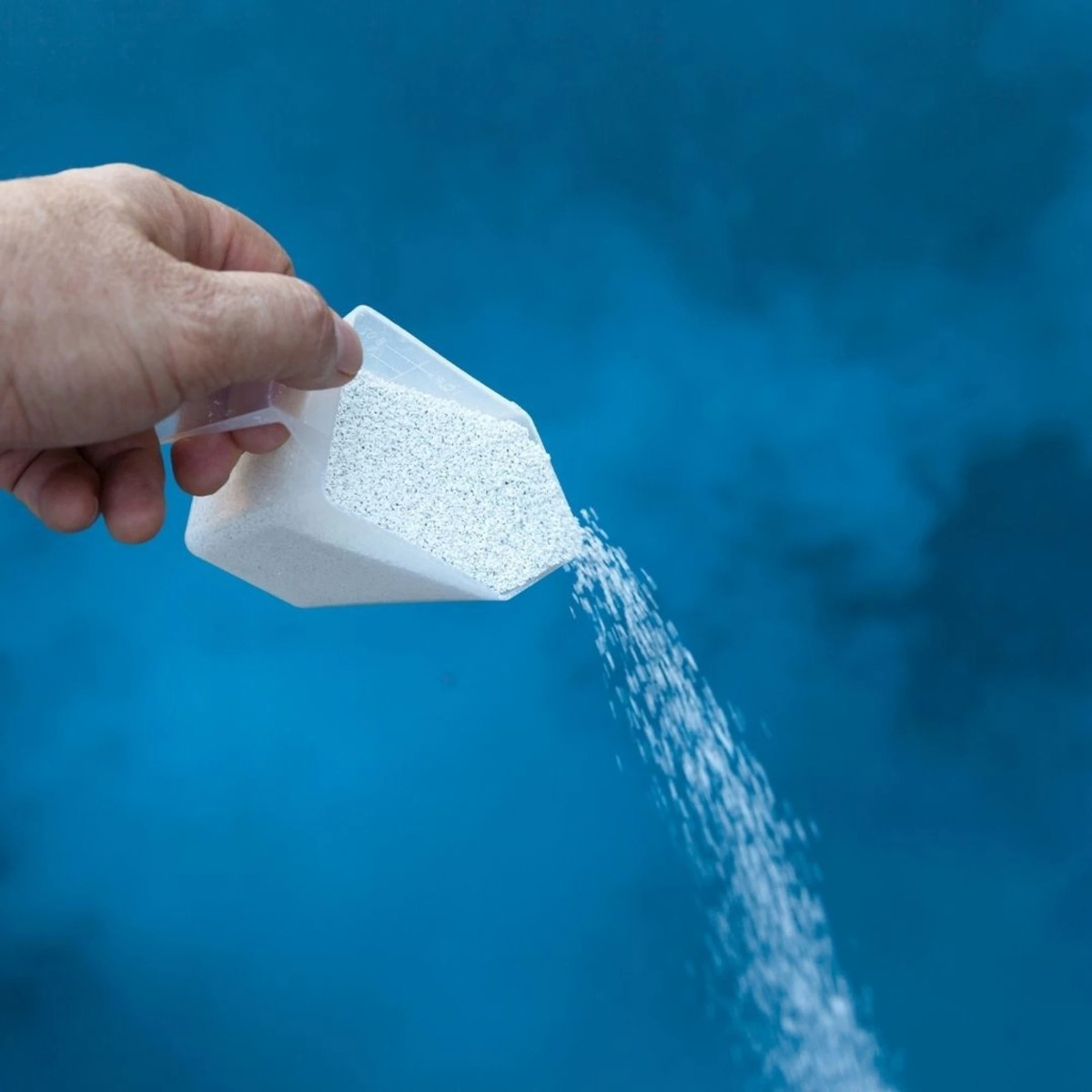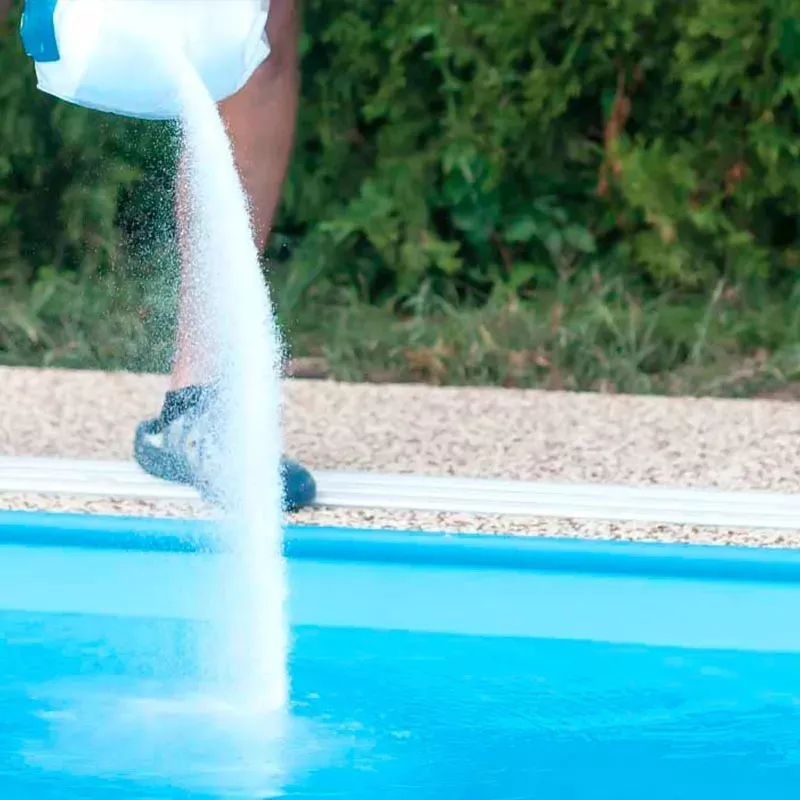 1- Agregar Cloro Técnico, siendo la dosis inicial de 10 gr. cada 10m3 de agua (10.000 litros). Utilizar la cuchara dosificadora que se encuentra dentro del envase. (Una cuchara tiene una dosis de 10g aprox.). Dejar actuar al menos 30 minutos antes de ingresar a la piscina.