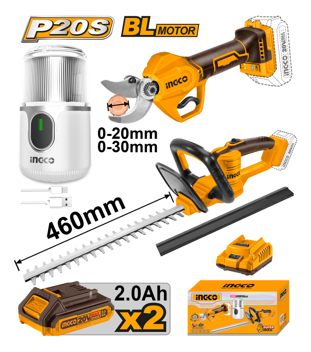 Combo De Tijera De Poda A Bateria Brushless + Cortacerco Color Amarillo