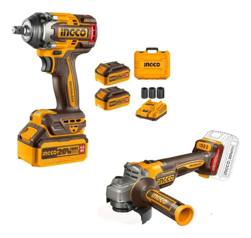 COMBO INGCO LLAVE DE IMPACTO 500NM + AMOLADORA BRUSHLESS CON 2 BAT 4 AH Y UN CARGADOR CON MALETIN