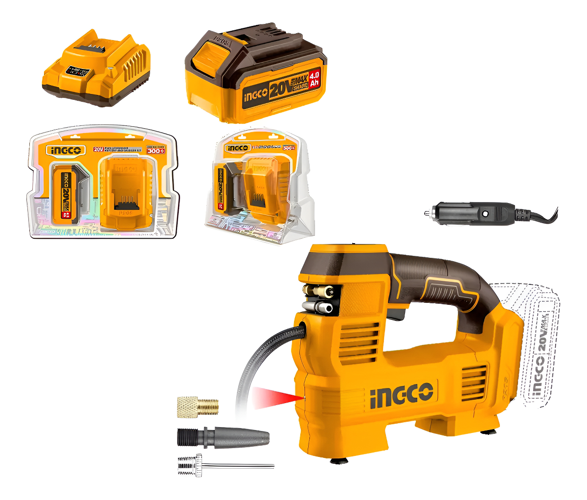Compresor Aire Inflador 160psi 20v 12v + Bateria 4ah Ingco cantidad